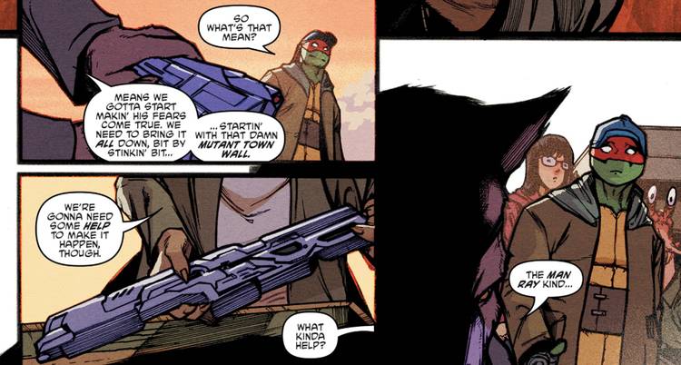 Later, Hob found a kindred spirit in Baxter Stockman but turns out, he got shot and left dead by his supposed ally. Just as with Splinter before him, this put Stockman square in Hob’s sights. This led to Hob being extremely impatient, full of anger and desperation. He went on to push his limits and become what was not expected of him. From leading the Mighty Mountains in street-level scuffles, he went on to carry out a bombing that created a mutant town. Thus, leading Raphael and Old hob to become the most unlikely enemies. But now that they are working together, this is shocking yet overwhelming.